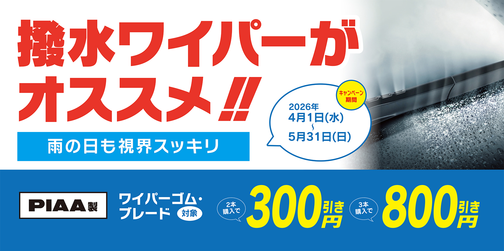 雨の日も視界良好で安心・安全!ウィンドウから水玉が落ちる!