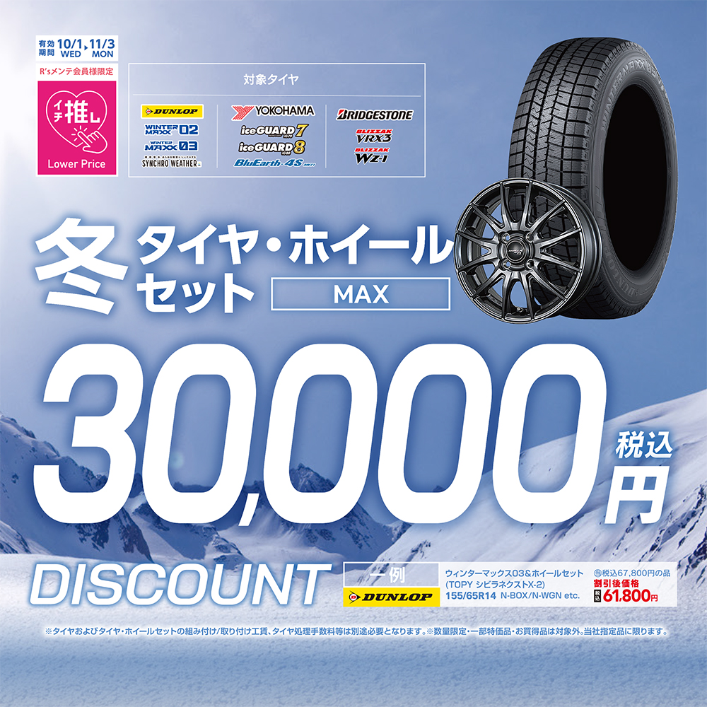 冬タイヤ・ホイールセット MAX30,000円DISCOUNT