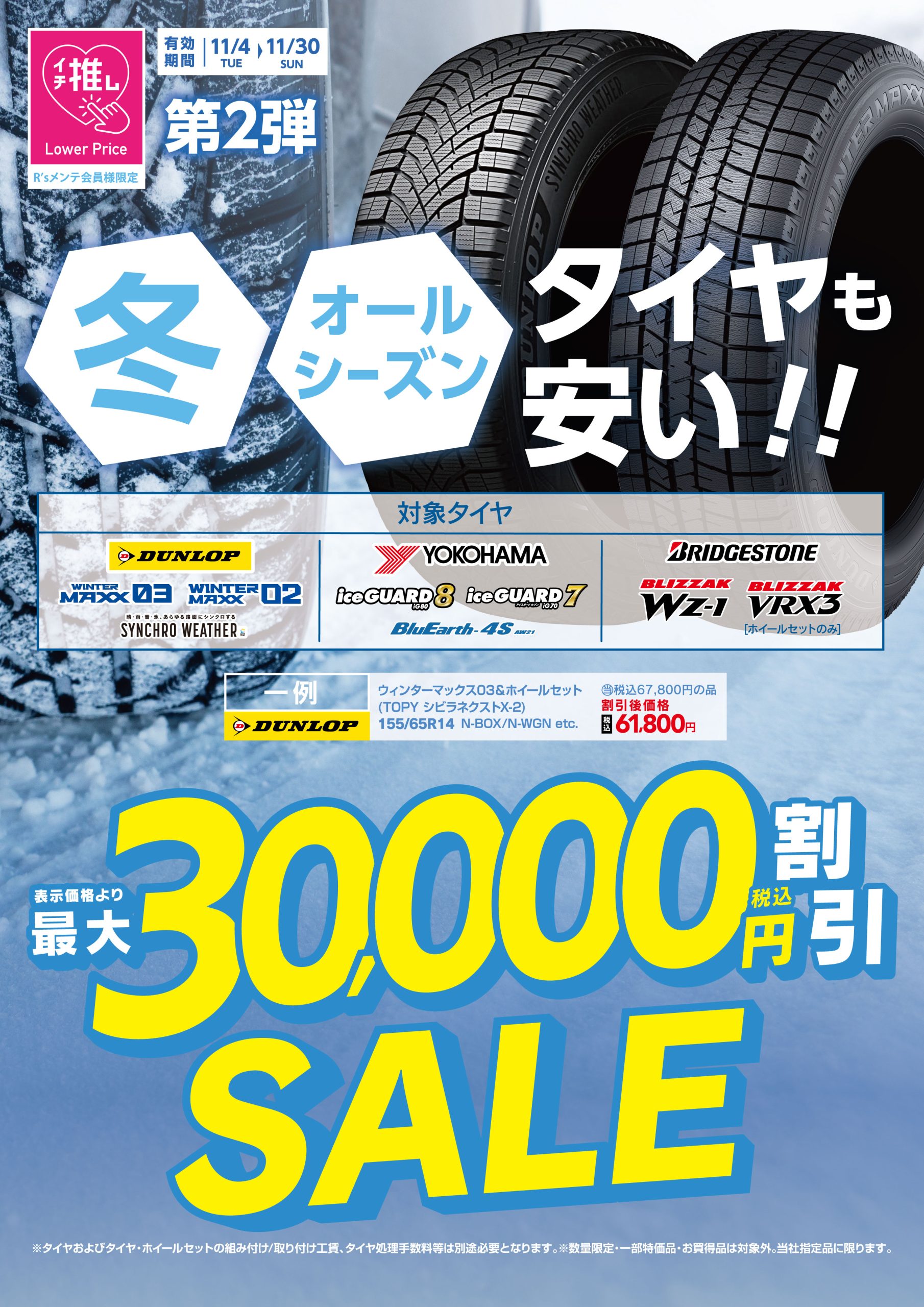 第2弾 冬・オールシーズンタイヤも安い!