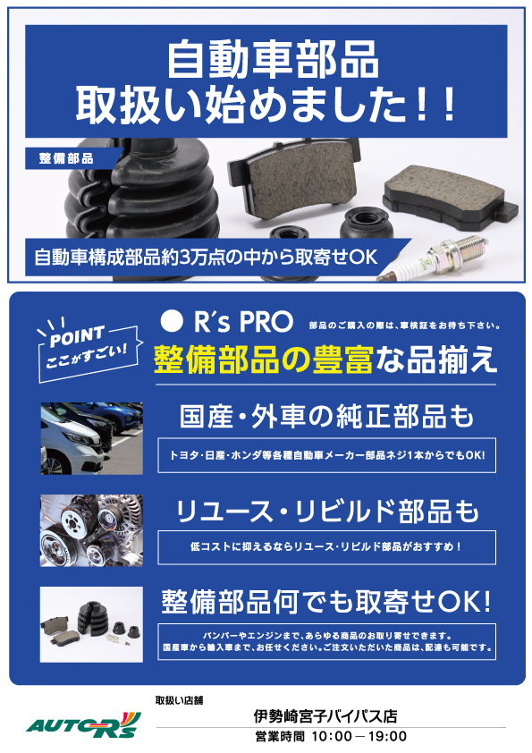 【伊勢崎宮子バイパス店限定】自動車部品取扱い始めました!!