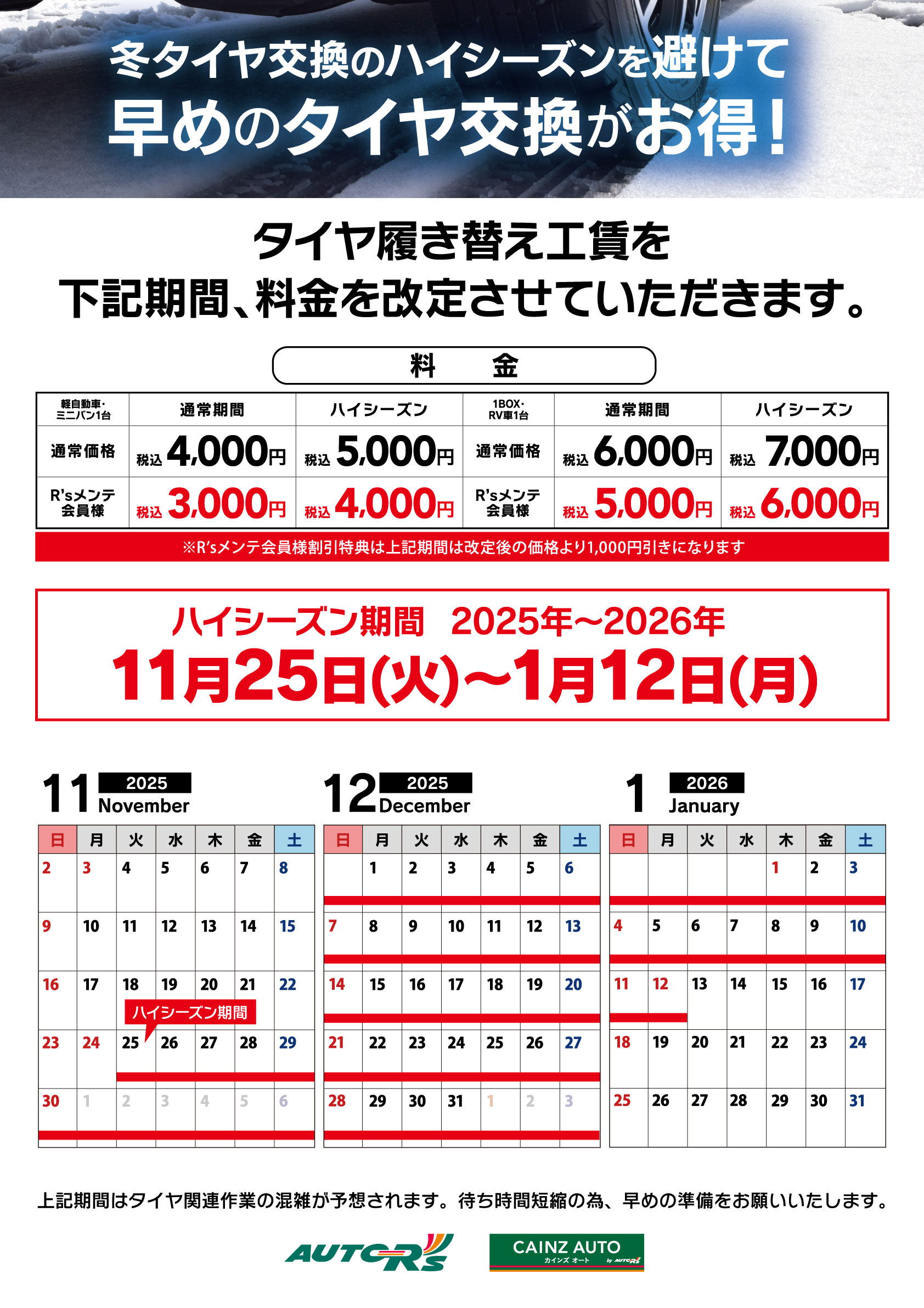 タイヤ交換ホイール付(夏⇔冬 入れ替え)+オイル交換・エレメント交換