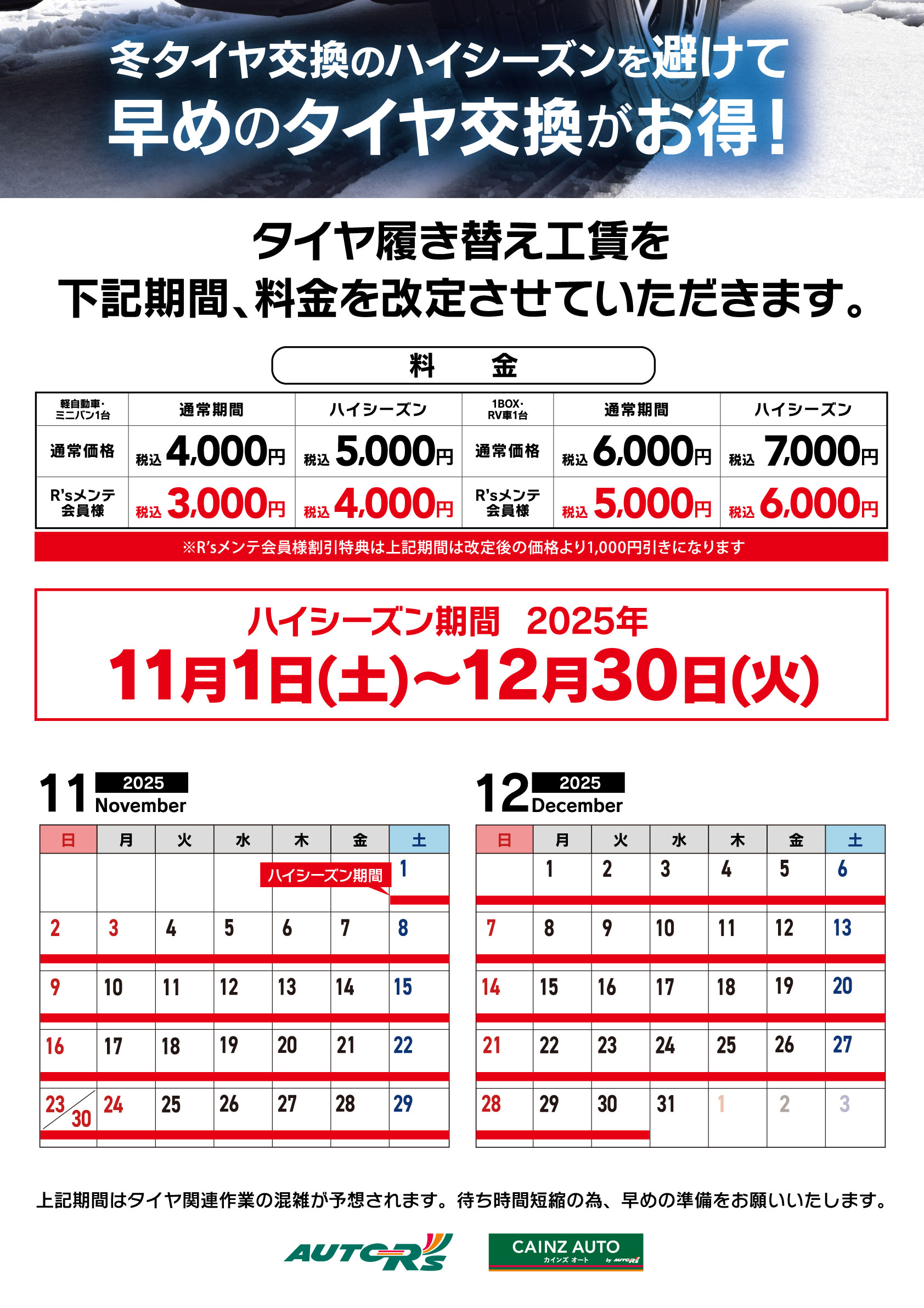 タイヤ交換ホイール付(夏⇔冬 入れ替え)