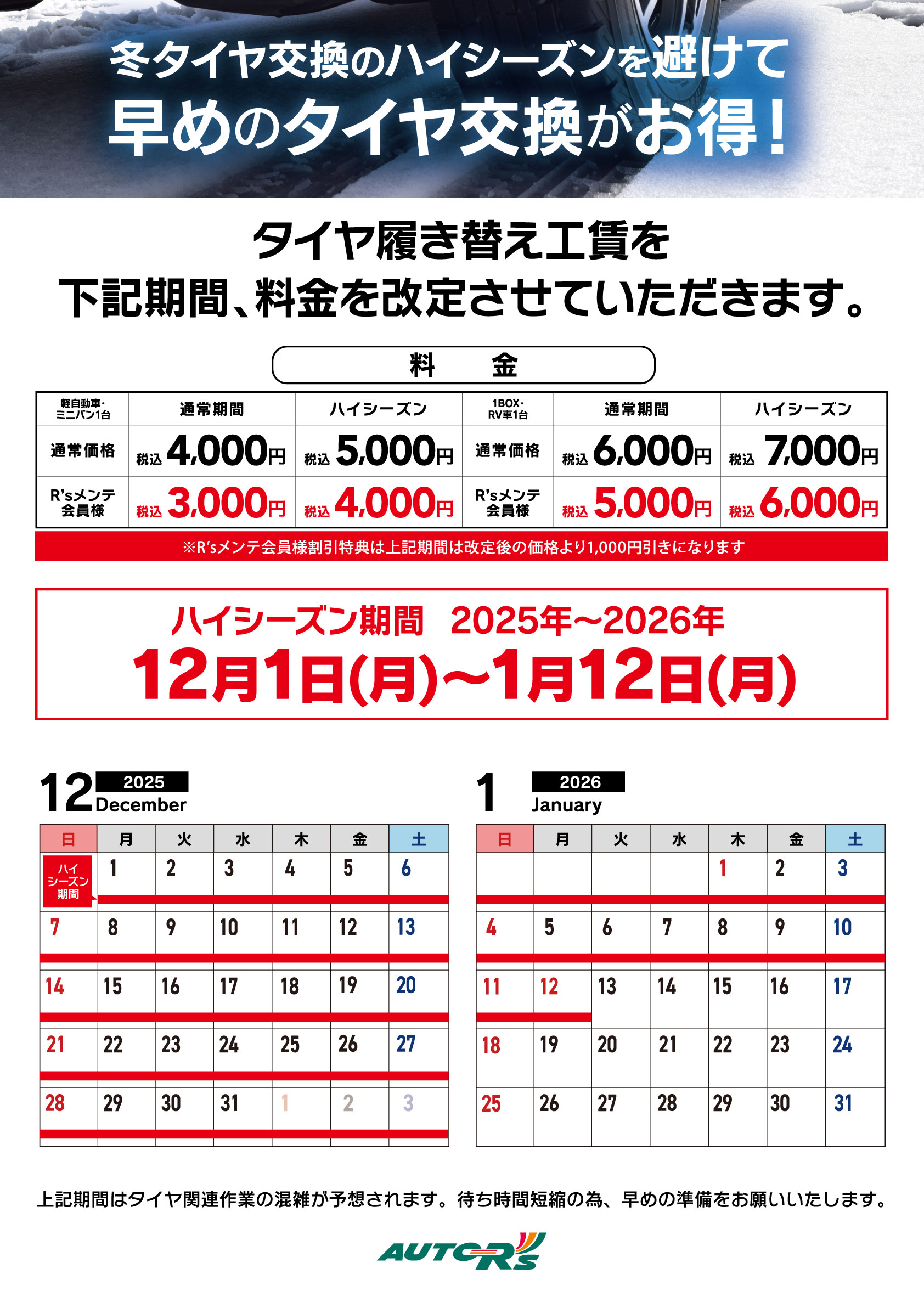 タイヤ交換ホイール付(夏⇔冬 入れ替え)