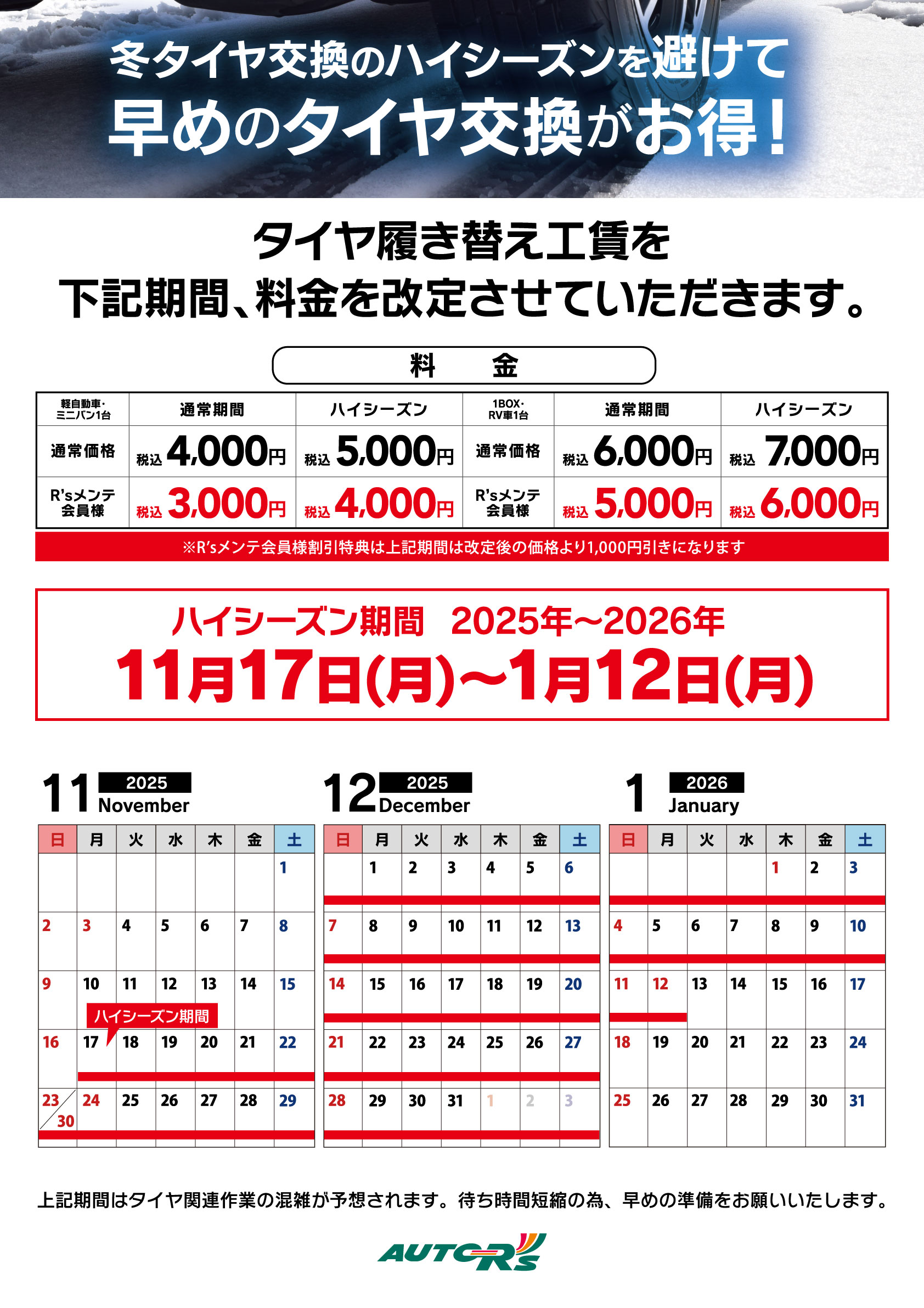 タイヤ交換ホイール付(夏⇔冬 入れ替え)