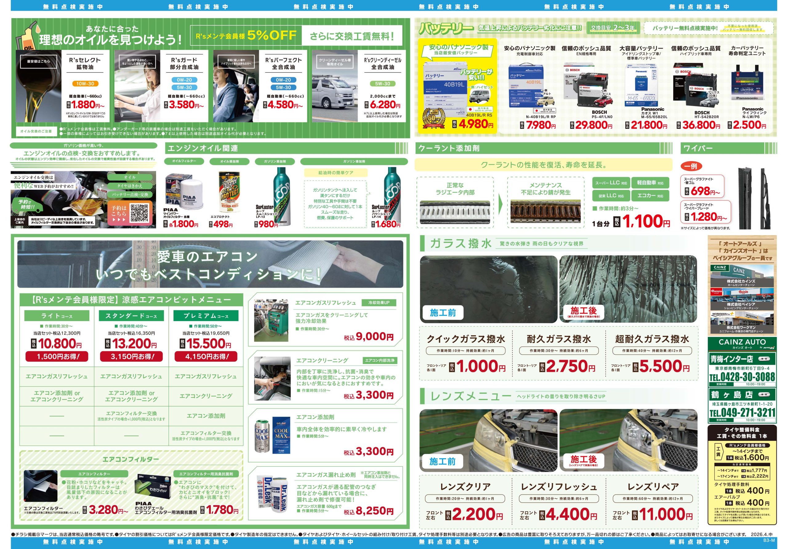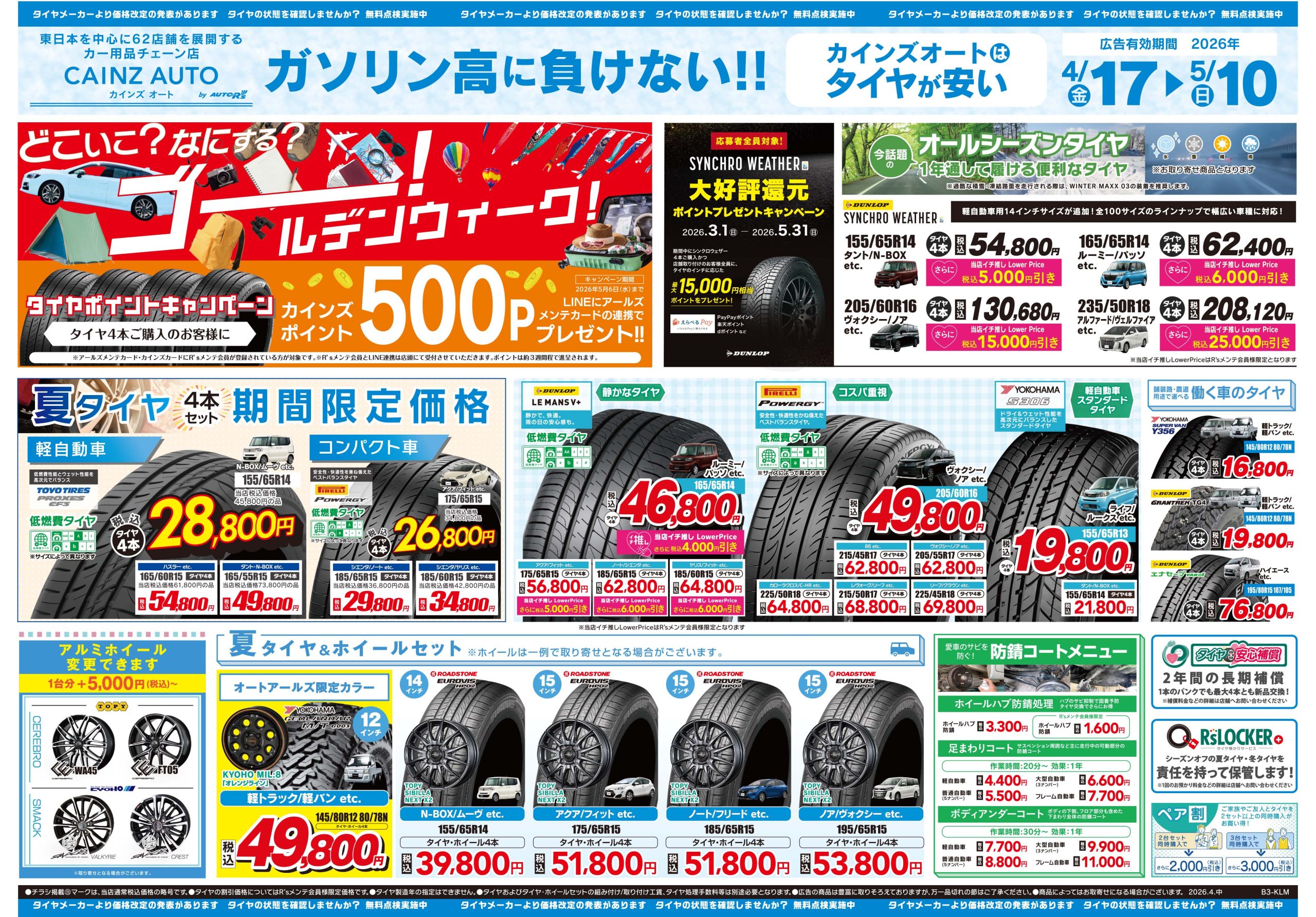 タイヤ交換ホイール付(夏⇔冬 入れ替え)+オイル交換・エレメント交換