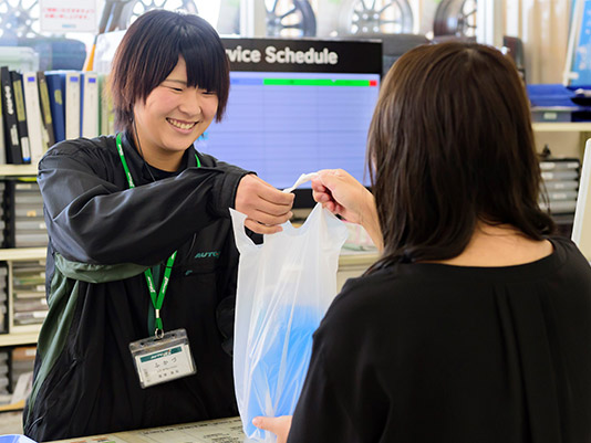 自動車用品の接客、販売とそれに付帯する取付・メンテナンスなどのカーピットサービス業務に携わります。