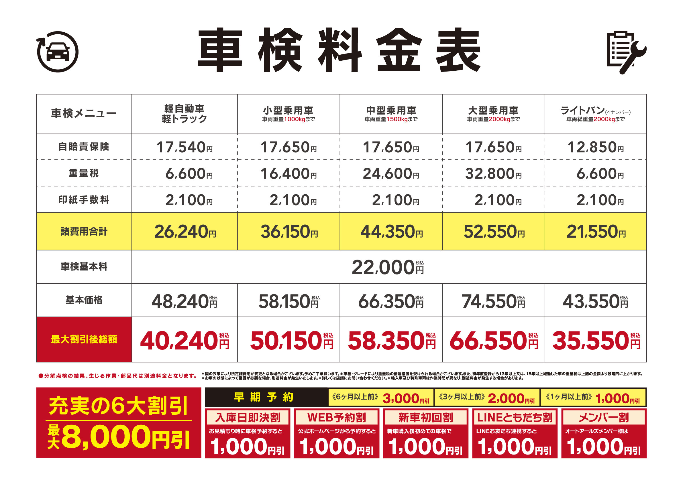 車検料金表