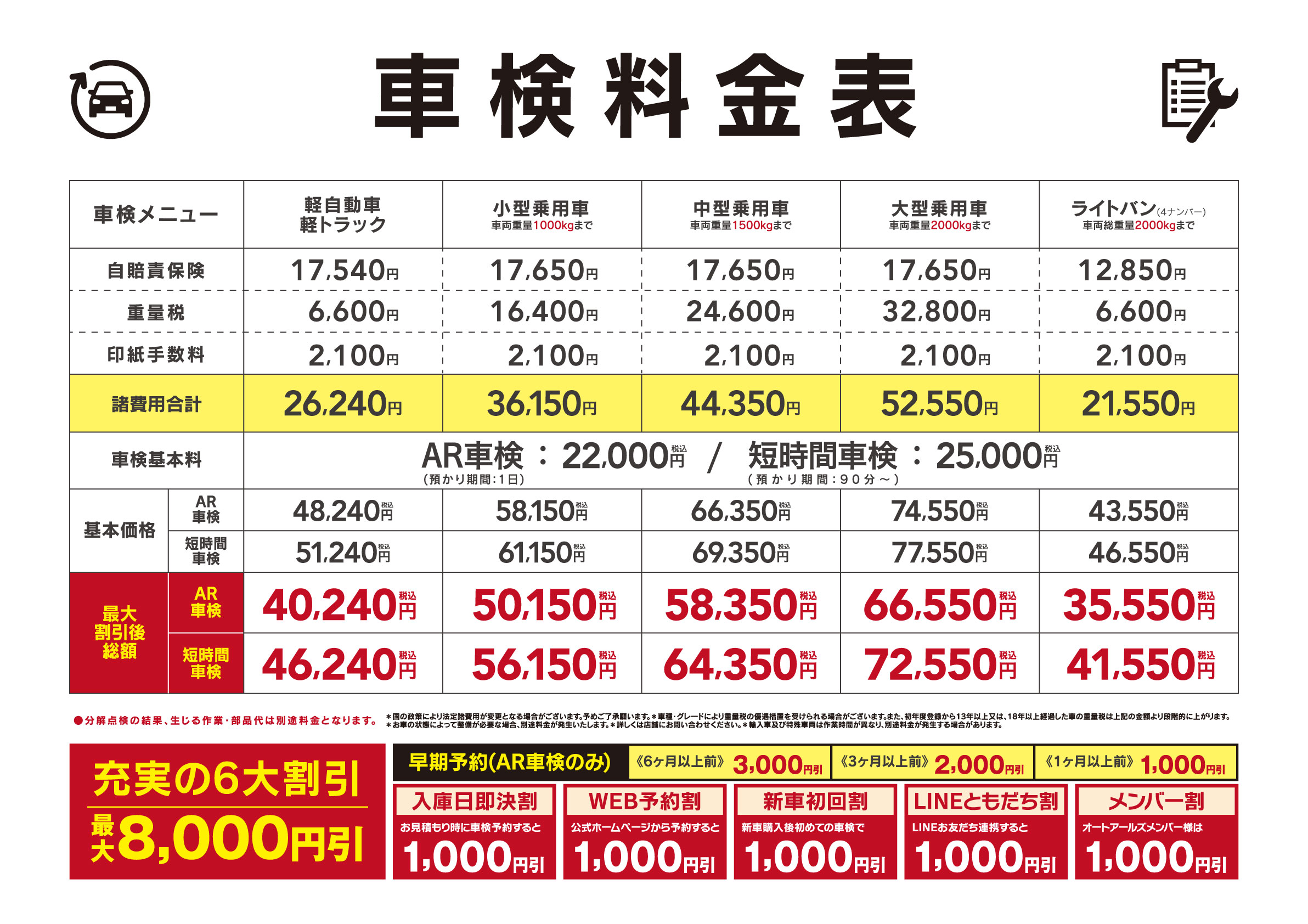 車検料金表